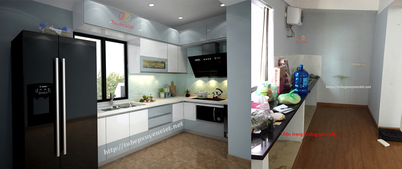 Không gian bếp đẹp tinh tế bằng nhựa pvc foam cao cấp cho nhà chung cư anh Hùng