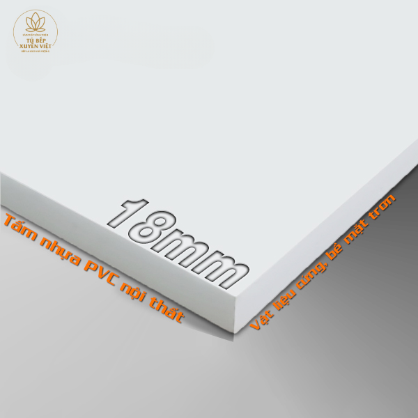 Khác với các dòng nhựa rỗng hay gỗ công nghiệp thông thường, Xuyên Việt cam kết sử dụng 100% nhựa PVC đặc dày chuẩn 18mm bóng loáng hai mặt, phụ kiện inox giảm chấn, laminate An Cường, sơn men bóng ô tô chất lượng cao.