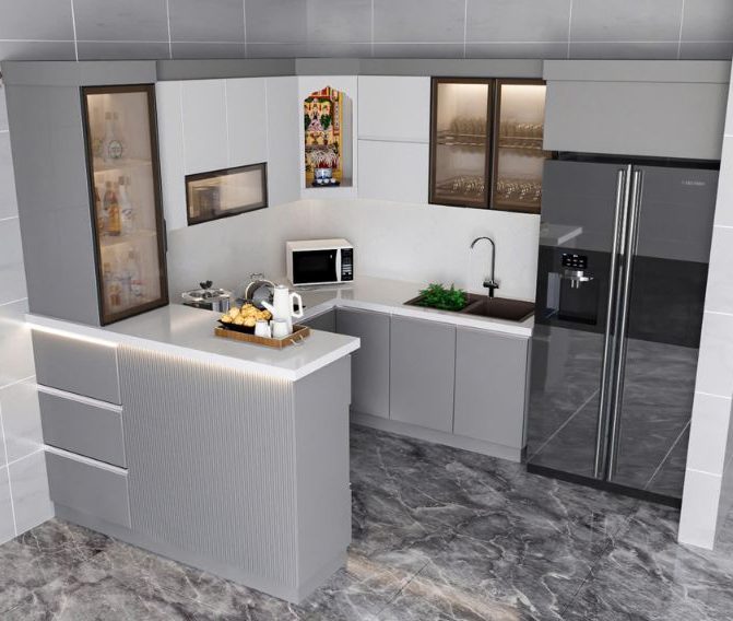 Bố trí công năng khoa học: Thiết kế cần ưu tiên các ngăn kéo, giá kệ ở độ cao vừa tầm với, hạn chế tối đa việc người sử dụng phải cúi quá thấp hoặc với quá cao, gây ảnh hưởng đến xương khớp.